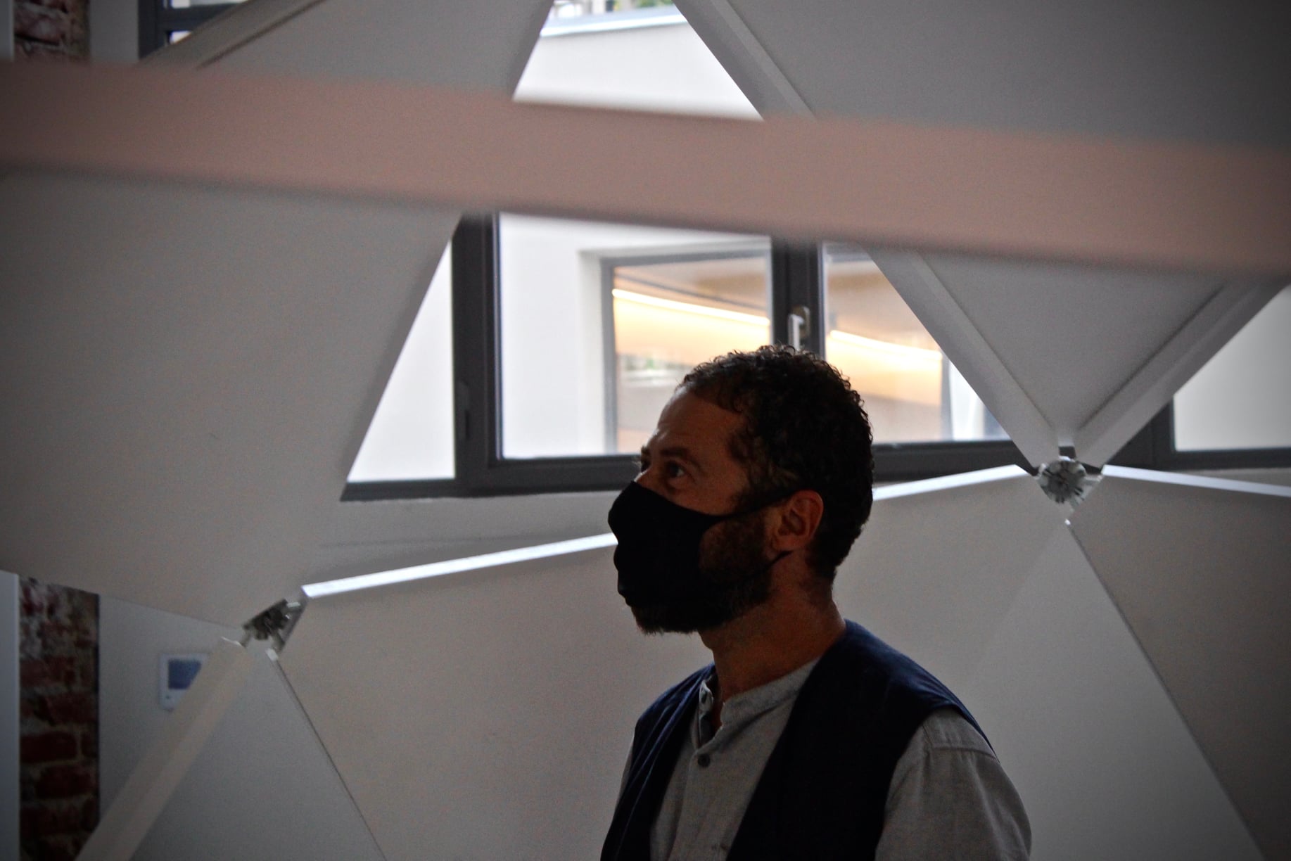 Cabin Fever refers to the distressing claustrophobic syndrome and to the discomfort that each of us experienced during the lockdown. A computer algorithm that works through audio speakers, exciters, infrared sensors and LEDs determines the presence and movement of humans in order to generate a dystopian sound design. An illusory comfort zone that forces us to question ourselves about a new way of conceiving spaces and distances.